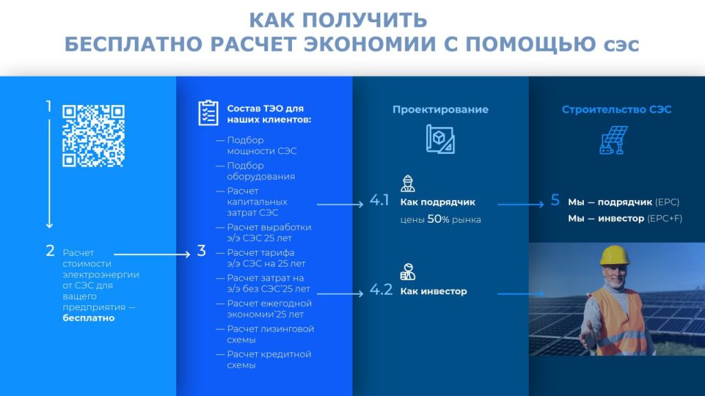 — Расчет вашей экономии: сколько будет стоить ваша электроэнергия от СЭС и какую сумму вы будете экономить ежегодно.